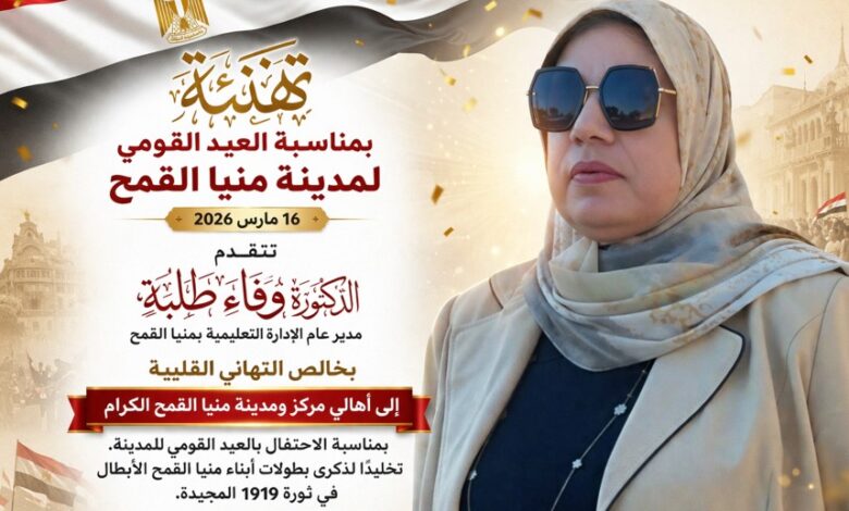 ووجهت القيادات التعليمية تهنئة خاصة إلى الأستاذ أشرف عامر، رئيس مركز ومدينة منيا القمح، وكافة القيادات الشعبية والتنفيذية، وأعضاء مجلسي النواب والشيوخ، وجميع العاملين بقطاع التعليم، تقديرًا لجهودهم في خدمة المجتمع.